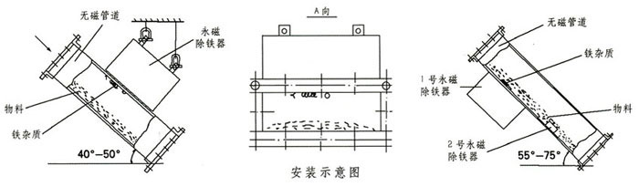 RCYA管道永磁除鐵器包括無磁管道和永磁鐵兩部分,專用于對封閉管道內(nèi)非磁性物料的除鐵,永磁除鐵器內(nèi)部采用高性能稀土強(qiáng)磁材料組成復(fù)合磁系。具有體積小、磁力大、重量輕、除鐵干凈、方便、無能耗、使用壽命長等特點(diǎn)。適合沒有輸送皮帶,只能提供下料溜槽的場合。當(dāng)散狀物料經(jīng)過管道式永磁除鐵器時,鐵雜物被高場強(qiáng)的永磁鐵所吸附,清除鐵雜質(zhì)時,打開管道專用門將雜質(zhì)取除。該設(shè)備適用于含鐵量較少的場合,含鐵較多的場合應(yīng)選用自卸式除鐵器。主要應(yīng)用于水泥、化工、煤炭、塑料、耐火材料、建材、造紙等行業(yè)的下料管道中清除鐵雜物。